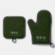 Initials Monogram Couple Name Dark Green Oven Mitt & Pot Holder Set