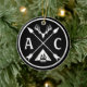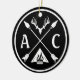 Showcase your adventurous spirit with this personalized round emblem design. The ornament features two crossed arrows, symbolizing exploration, with a deer antler at the top and a campfire at the bottom, bringing a rustic, outdoorsy vibe. Customize the initials "A" and "C" with your chosen letters, making this a truly personal keepsake or gift. The black and white design offers a bold contrast, perfect for those who love nature, camping, and adventure.