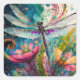 Ink and Pen Watercolor Dragonfly Square Sticker