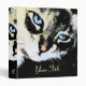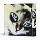 Close up of a cat's face with bright blue eyes. Digitally inked, with intense shadows and contrast. Art binder -- add your title or name to the front and spine to customize it..