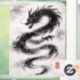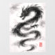 Dynamic Sumi-e/ink illustration of a curved dragon in powerful brushstrokes. Minimalist, high-contrast, and with a traditional seal accent - perfect as modern Asia wall art for living rooms, offices, or gaming setups.
