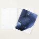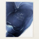 An abstract background reminiscent of liquid ink in shades from deep navy blue through cyan and white is the backdrop for elegant handwritten script text and modern design layouts in the pieces of this beautiful wedding suite. The wedding planner shown here features the above background with a label to hold your name and a title for your book. Search ID762 to see all the coordinating pieces in this set.