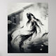 A graceful koi fish swims through a meditative pond formed from flowing black ink and elegant sumi-e brush textures. Fluid fins dissolve into painterly splashes while pale stone edges, lotus leaves, and soft mist create a balanced Japanese-inspired setting. This premium monochrome artwork blends tranquility with bold modern design, making it ideal for Japandi homes, spas, offices, meditation rooms, and collectors of minimalist nature art. A timeless decorative statement.