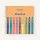 A fun light orange sketchbook for kids with the doodle of pastel ink pens . Personalized it with the child's name using the template . You have the option to choose between a soft or hardcover . This design is also available in black and teal .