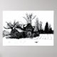Ink Sketch Old Farm Winter Scene Poster
