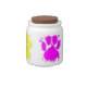 The candy jar was a gift. The recipient absolutely loves it. It shows two rescued pets who are now adopted and the logo of the national charity that facilitated the rescues. The featured dog's adoptive mom ordered a jar too; she and the dog both love it as well. The dog is especially fond of the candy jar as mom keeps doggie treats in it. The printing is undoubtedly excellent although I did not see it in person myself.
