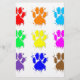 A colorful pattern of dog paw prints with ink splatter effect.