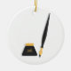 Lightweight, smooth, pure white ornament with nice sheen. Perfect size to be seen from across the room ... and to attract closer inspection! Price was great for ordering enough for the whole family! Clear, bold black design just as requested. Matches the order exactly. Just so nice!
