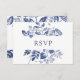 This lovely and stylish botanical wedding response card features trendy blue ink leaves on a white background.