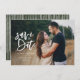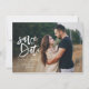 Inky script photo save the date monochrome save the date wedding invitation. Black and white but background color can be changed.