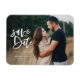 Inky script photo save the date monochrome save the date wedding invitation magnet. Black and white but background color can be changed.