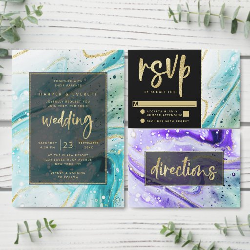 Inky Splash Marble Alcohol Ink with Gold WeddingDesigned by Lulu Jager