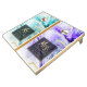 Inky Splash Teal & Purple Marble with Gold foil Painted Alcohol Ink background texture, gold foil look veins and streaky lines, and lots of cells and dots. A super trendy ultra Modern Luxe Look for any season, with bright colorful color palette : Black, teal, Aqua, Ocean blue, ultra violet purple, White, and gold, with a chic brush Script lettering Font - Personalized Wedding Mr. & Mrs. Newlyweds Cornhole Board Set!