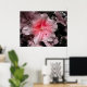 A photograph of a soft pink azalea, the petals sprinkled with raindrops after a spring storm and enhanced by selective coloring.