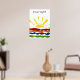fully customized. watercolor of loose brush strokes of yellow sun going down in the ocean with the colors of red, orange, blue, green.