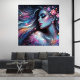 This stunning artwork features a serene woman's face surrounded by vibrant, flowing colors, symbolizing harmony and calmness.