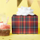 Gift wrap with the tartan for Clan Innes and its septs, including Mitchell and Wiley. Elaborate Scottish plaid pattern from 1951 in bright red with blue, white, blue, green and yellow accents.
