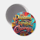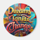 A vibrant design featuring the text "Dreams Ignite Change" in a dazzling array of colors, accented with golden touches that shimmer like stars. The bold typography is surrounded by abstract shapes and swirling patterns, symbolizing the energy and potential of creativity. This piece inspires viewers to embrace their aspirations and transform them into reality."Original Image was generated by Meta AI. AI generated artwork. Licensed under CC BY-SA 4.0.