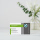 A simple design centered on rectangular columns. In the green column sits your name and job title. Directly below, there is a thin vertical green rectangle which accompanies green social icon buttons for your card details. At the right wall, there's a large grey rectangle that has the logo and its inverted business name by the side. Overleaf, the card has two portions. The upper white piece has the logo and business name. The green column directly underneath has the business details along with its slogan tagline option. If you decide to upload a photo instead of a logo, the dimensions are 1,000 x 1,000 pix. This design has lots of option which allows you to customize the card. This card would be great especially for heads of companies or the upcoming boss in you.