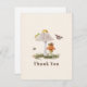 Nature storybook page inspired baby shower thank you featuring illustration of two mushrooms surrounded by moth, bee, grasshopper, and snail.