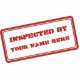Add your name or completely customize the text on this fun red DIY rubber stamp design. Text says "Inspected by" and you can add your name as the inspector, or change the text altogether. Some ideas might be "Property of [your name]" or "Quality Assured by [name]" "Approved By [name]" or even "REJECTED" for a funny personalized gift idea.