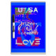 White: Employed for the "USA" and "LOVE" text, offering a strong contrast against the blue background, ensuring the words stand out prominently.