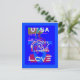 White: Employed for the "USA" and "LOVE" text, offering a strong contrast against the blue background, ensuring the words stand out prominently.