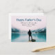 Inspirational custom Father's Day postcard features a man standing on a rock looking at a lake surrounded by beautiful mountains. It features Bible Verse Jeremiah 17:7, "Blessed is the man who trusts in the LORD." _