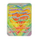 The refrigerator magnet features the rainbow colored word "ONE". Beneath the word "one" are chakra energy centers colored words of "awareness" (violet), "vision" (indigo), "voice" (light blue), "heart" (green), "thought" (yellow), "feeling" (orange), and "being" (red). This magnet can be customized with your own options to make personalized spiritual awareness art gifts!