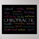 Colorful and inspirational words that pertain to chiropractic surround white "CHIROPRACTIC" in the center of poster, all on a black background.