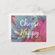 Inspirational Choose Happy Quote Affirmation with colorful daisies background (pink, blue, yellow). Motivational choose happy quote to keep you inspired and positive.