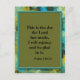 Blue, green, yellow paint splattered inspirational Christian Bible verse postcard with Psalm 118:24 printed on the front: "This is the day the Lord has made. I will rejoice and be glad in it."