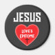 Enhance your space with the divine message of love and faith with this Inspirational Christian magnet. Featuring the powerful name "JESUS" in bold typography above a radiant red heart, this design beautifully embodies the essence of divine love. Inside the heart, "LOVE'S EPITOME" speaks to the ultimate expression of Christ’s love, accompanied by a small cross for a touch of devotion. Perfect for refrigerators, lockers, office spaces, and more, this magnet serves as a meaningful reminder of faith wherever it’s placed. A wonderful addition to any Christian home or a thoughtful gift for those devoted to their beliefs!