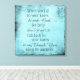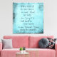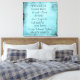 Inspirational Christian Quote (by Vikkelynne) Message Canvas Print. With a sky blue background and rustic edge border in black, this canvas print features the saying, "When you fall to your knees and ask God for help, don't forget to fall back to your knees and say Thank You when He answers." Gratitude.