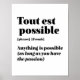 Tout est possible. Anything is possible. Inspirational and motivational French quote design for those who love the beautiful and romantic French language. Cool dictionary definition style merchandise mixed with witty sarcasm and light humor. Who says you can't be funny, chic and cool while inspiring others with this insightful words and life sayings. Great souvenir, Christmas gift and birthday present for those who dream of travelling to Paris and fall in love on the Eiffel Tower.