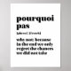 Inspirational French Word Take Chance Pourquoi Pas Poster