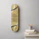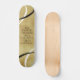 A rather apropos skateboard with the quote, "The journey is the same. Only the path taken is different", rendered in elegant lettering on a faux stained burlap background.