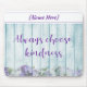 Lovely mouse pad with blue and purple palette and floral design. ALWAYS CHOOSE KINDNESS is written on the faux wood fence in decorative script lettering above the flowers. Personalize with your/recipient name!
