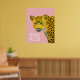 Trendy pink stay wild green eyed leopard poster.