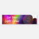 Our inspirational bumper sticker displays a multi-colored mandala against a colorful abstract background in shades of pink, orange, purple, yellow and green. The text says, "Let Your Light Shine," a reminder we all need to see every now and again.