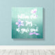 Inspirational Life Joy Quote canvas prints. Beautiful aqua and teal background shades with white typography, purple floral accents. Follow the joy of your soul. Let your joy be your compass. What brings you joy? Let it light your path. See more at Quote Life Boutique.