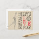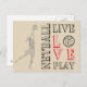 Netball quote, live love play quote postcard design. Custom personalised cards for netball player or coach.