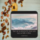 Stunning set of 6 coasters with a black background and beautiful mountain at twilight in the center. Printed in script is a French proverb, "There are no miracles for those who have no faith in them." Mauve, blue and black tones. Beautiful and a great gift idea!