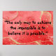 Transform your space with the Inspirational Monogram: Black on Red Poster, sized 60" x 40". Featuring a bold black monogram against a vibrant red and gold background and the quote, "The only way to achieve the impossible is to believe it is possible," this poster makes a dynamic addition to any room. Ideal for offices, living spaces, or anywhere you seek to add inspiration and style.