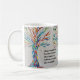 This decorative coffee mug features a mosaic tree in rainbow colors and an inspiring quote.