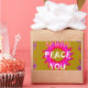 This artwork prominently features the phrase "Peace Be With You" displayed in the center. The text is stylized and surrounded by a decorative floral border, creating a balanced and symmetrical composition that draws the eye to the uplifting message. A solid color background provides a clear contrast, enhancing the overall design.