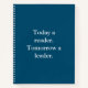 This inspirational notebook says, "Today a reader. Tomorrow a leader." It's a great notebook for class, keeping a journal, work notes or as a diary. This positive message makes a great gift for a student for back to school or anyone else who likes positive thinking. Really anyone aspires to a position of leadership will appreciate this motivational affirmation. The letters are white font on teal.