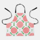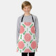 Great color and even though I ordered the kid size, it covers well enough to use during the holidays. I am not a big woman and prefer a shorter apron. I stand 5"6" and the length of the garment goes to mid-thigh. The tie straps fit well at my waist and even though there is no neck strap adjustment, the opening is plenty big enough. I am happy with the size and fit. I am sharing my apron with my 10 year old grandson, too! The color is vibrant and looks good, as shown on the website. The stitching looks strong and reinforced. Photographed is front side and back side of the apron, reinforced straps and coloring. My phone camera may not be the best at showing the details.