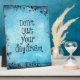 Inspirational Quote: Don't Quit your Daydream. Cool deep distressed blue background with vintage antique black edges with dragonfly accents frame this inspirational and motivational message. Some items feature the quote only.