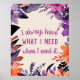 Bold inspirational quote states "I always have what I need when I need it." Positive affirmations are powerful tools to manifest abundance. Available in several floral wreath color schemes. The law of attraction matches your vibration, so feel that your life is full of positive, confident, and fierce choices. Don't believe it? Challenge yourself to "fake it 'til you make it". Take baby steps and great leaps of faith. Make a commitment of writing in your gratitude journal every day. List at least three things you are grateful for every day. Work up to ten things a day. Keep track of the things throughout the day which demonstrate you always have what you need when you need it. Eventually, you will begin to see that yes, it is always true.